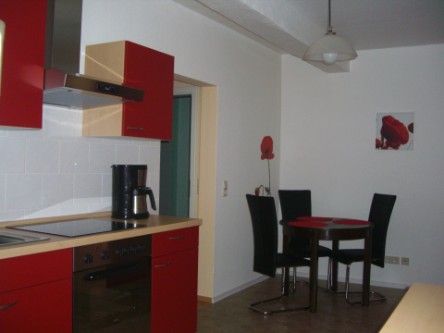 Ausstattung Küche: Küchenzeile, Essecke, Kühlschrank, Herd+Backofen, Wasserkocher,